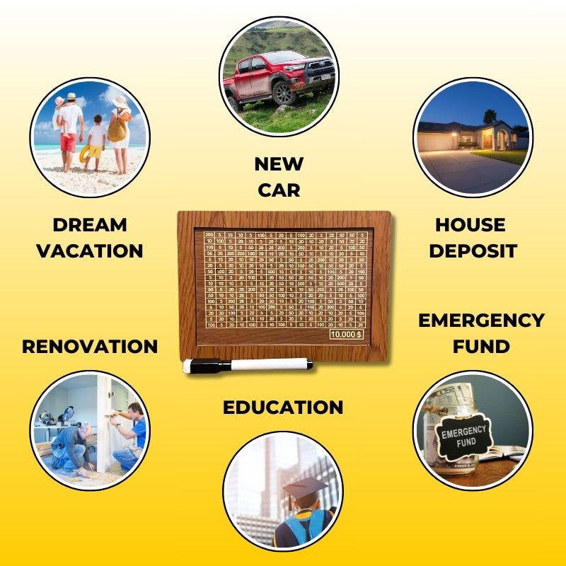 The easy-to-follow chart keeps you on track. Seeing your money grow daily builds excitement & pride.